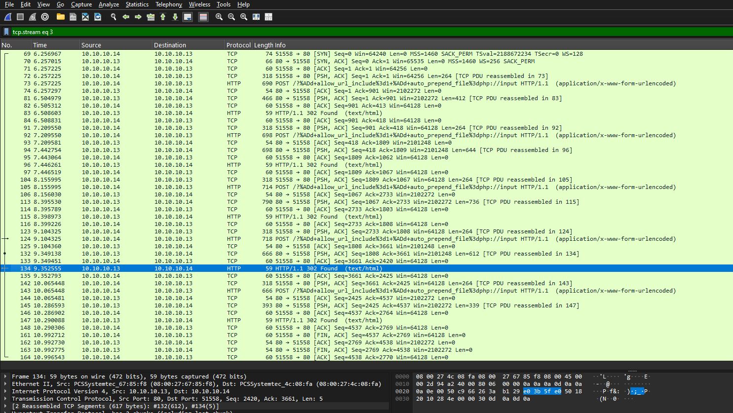 4. Follow the HTTP Stream: Right-clicking on an HTTP/1.1 **302 Found** response, we follow the HTTP stream, hoping to uncover more clues.