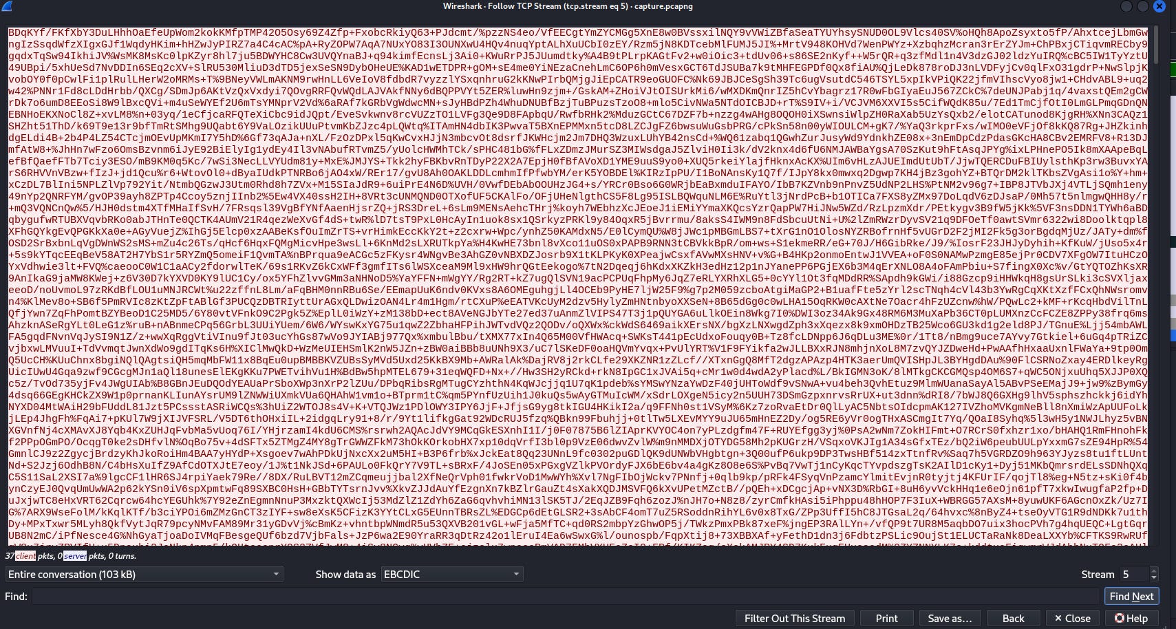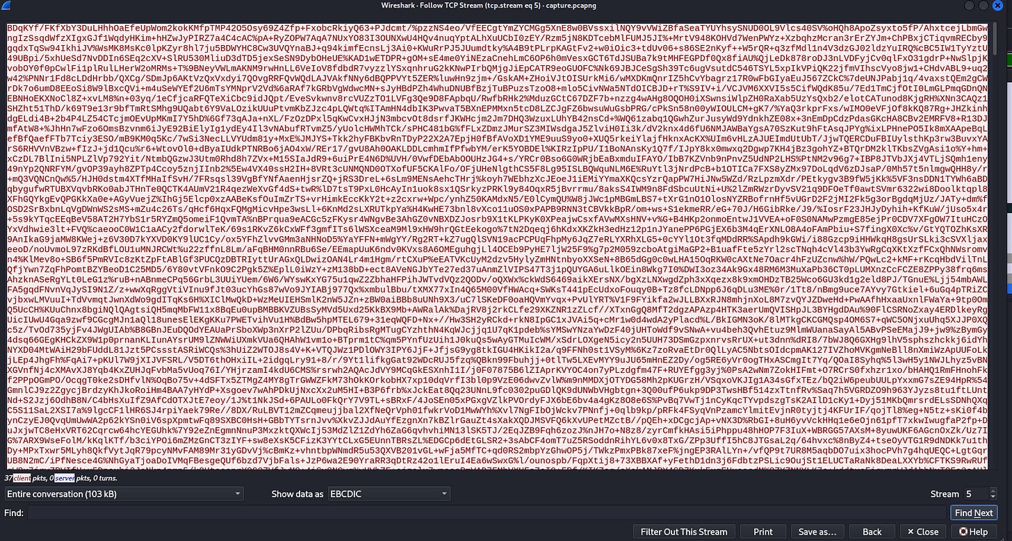 - PCAP Analysis: In Wireshark, filter for `tcp.port == 8080` and follow the TCP stream. Change "Show Data As" to EBCDIC.
