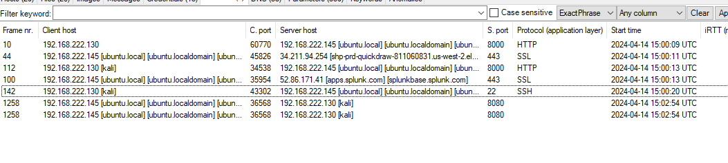 - Using NetworkMiner: SSH login timestamps are visible in the pcap.