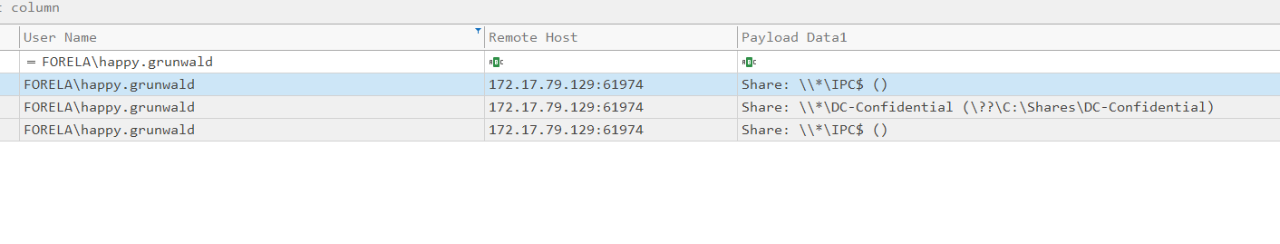 Scroll to the Payload Data1 column to identify the username of the targeted account.